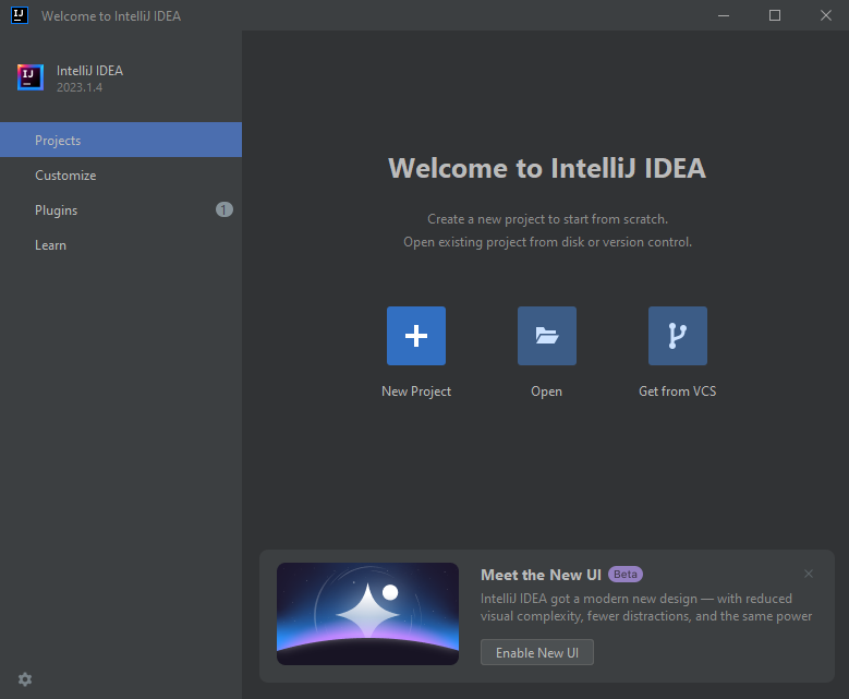 Como estamos iniciando nuestro desarrollo con la herramienta, vamos a seleccionar la opción "New Project":